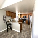 Kitchen has quartz countertops and a sit up breakfast bar that is open to the dining area. Located on a quiet cul-de-sac.