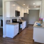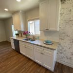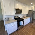 The Kitchen boasts white shaker style cabinets, luxurious quartz countertops, custom tile backsplash and stainless steel appliances.